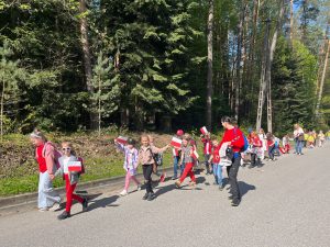 Pełni entuzjazmu, trzymając biało-czerwone flagi, wyruszyliśmy na wspólny spacer, by w duchu patriotyzmu i wspólnoty uczcić ważne dla każdego Polaka święta majowe. Były wspólne rozmowy, integracja, posiłek oraz dużo radości i uśmiechu!