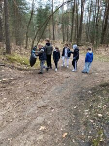 🌳🚮 W ramach inicjatywy uczniowie klas 5. i 6. wraz z opiekunami 👩‍🏫 Anną Dybską i 👨‍🏫 Kamilem Janusem wyruszyli, aby posprzątać las znajdujący się w pobliżu szkoły.