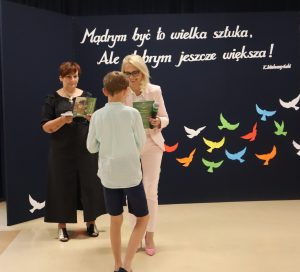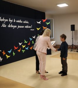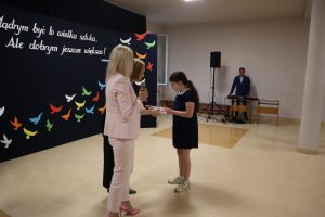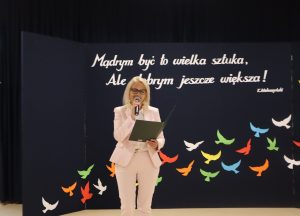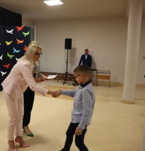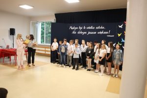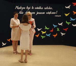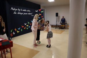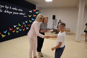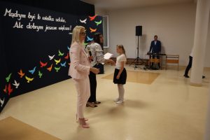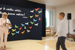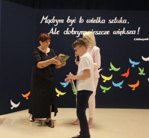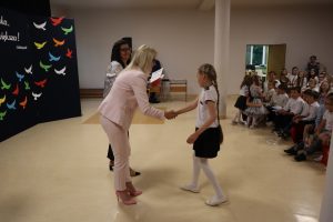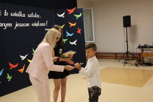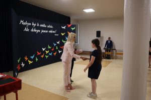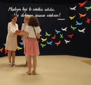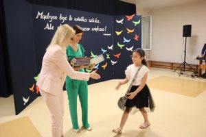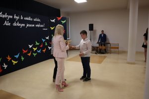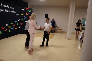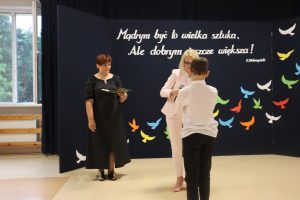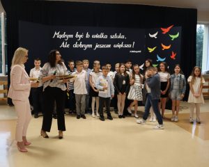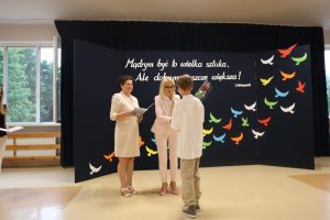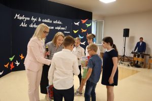 Gratulacje wszystkim uczniom złożyła pani Dyrektor Katarzyna Spera, która życzyła udanych wakacji, wypoczynku i bezpiecznego powrotu do szkoły we wrześniu. Nauczycielom, pracownikom szkoły oraz rodzicom podziękowała za owocną współpracę w minionym roku szkolnym.