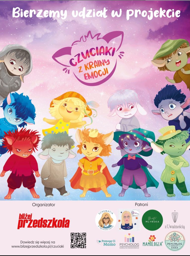 Z przyjemnością informujemy, że dzieci z oddziału przedszkolnego przystąpiły do wyjątkowego, całorocznego projektu edukacyjnego „Czuciaki z Krainy Emocji”. To comiesięczne wyzwania, których celem będzie wspieranie
