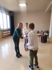 Wręczono również puchar dla klasy IVb, która osiągnęła najwyższą średnią ocen w szkole i przejęła trofeum od klasy Va.