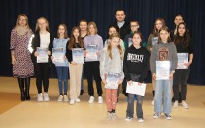 Podczas drugiego apelu dla klas IV – VIII Pani Dyrektor Katarzyna Spera wręczyła klasie 5B puchar za najwyższą średnią w szkole! Gratulujemy uczniom oraz wychowawczyni pani Wandzie Kołodziejczyk.