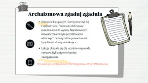 Archaizmowa zgaduj zgadula Post author:Marta Młodawska Post published:4 stycznia 2024 Post category:Bez kategorii Kolejne zadanie w ramach Ogólnopolskiego Projektu Edukacyjnego „Polak ma essę!” wykonane #Polakmaessę! #zadanie6 #SP1Stąporków #MartaMłodawska Może ci się spodobać również 8 Marca w Oddziale Przedszkolnym 10 marca 2025 Charytatywne ciastko dla Wojtusia 28 listopada 2023 Przedszkolaki na zakupach 😀 17 czerwca 2025