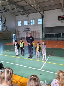 18 września nasi uczniowie z kl. 1 A i 1 B wzięli udział w profilaktycznych działaniach pn. ” Bezpieczna droga do szkoły ” . Spotkanie zorganizowane było w PSP nr 2 w Stąporkowie i przeprowadzone przez Funkcjonariuszy Powiatowej Policji w Końskich. Dzieci przypomniały sobie zasady bezpiecznego korzystania z dróg, właściwego przechodzenia przez jezdnię, a także w jaki sposób podróżować jednośladami. W trakcie spotkania podkreślano, jak ważne jest korzystanie z elementów odblaskowych, a także pokazano dzieciom jak udzielać pierwszej pomocy przedmedycznej.