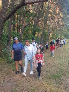 Na spotkanie przybyli uczniowie wraz z rodzicami oraz nauczyciele i dyrekcja szkoły. Marszobieg rozpoczął się od rozgrzewki prowadzonej przez Pana Olafa Mieszalskiego na boisku szkolnym po czym cała grupa ruszyła w trasę wiodącą leśnymi ścieżkami wzdłuż drogi prowadzącej w stronę Czarnieckiej Góry. Długość trasy wyniosła około 2 km. Całe spotkanie trwało niecałą godzinę.