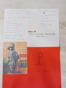 Uczniowie klasy ósmej wysłuchali historii powstania warszawskiego, dlaczego wybuchło, kto ruszył do walki, o co walczono z silniejszym przeciwnikiem. Przeczytaliśmy również opowiadanie Magdaleny Górskiej „Uczciwy wolontariat”, na podstawie którego zrealizowaliśmy scenariusz lekcji. Ósmoklasiści napisali życzenia dla Powstańców, które znalazły się na stronie https://wpis. dumnizpowstancow.pl/