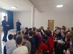 „Cyberprzemoc, cyberbezpieczeństwo i odpowiedzialność” to temat spotkania uczniów klas VI, VII i VIII z przedstawicielami Policji. Mł.asp. Krzysztof Biernat z Komendy Powiatowej Policji w Końskich oraz asp. szt. Grzegorz Grabowski dzielnicowy z Komisariatu Policji w Stąporkowie omówili zagrożenia w sieci oraz zagadnienia związane z odpowiedzialnością nieletnich za popełniane czyny i za zachowania niezgodne z przyjętymi normami społecznymi. Uczniowie wykazali zainteresowanie poruszanymi zagadnieniami, zadawali pytania. Uczestnictwo w tego typu spotkaniach przyczyni się do wzrostu świadomości i odpowiedzialności uczniów za swoje zachowania.