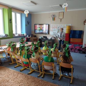Dzieci z oddziału przedszkolnego wzięły udział w programie przedszkolnej edukacji antynikotynowej pt. „Czyste powietrze wokół nas”. W pierwszym etapie realizacji programu odbył się spacer, który miał na celu ukierunkowanie dzieci na źródła i rodzaje dymu. Przedszkolaki uczestniczyły w zajęciach dydaktycznych, na których zwiększyły wiedzę na temat szkodliwości dymu papierosowego oraz skutków palenia papierosów. Program miał na celu również zwiększyć kompetencje dzieci w zakresie umiejętności zachowania się, gdy przebywają w zadymionych pomieszczeniach. W ramach programu odbyło się również spotkanie z Panią pielęgniarką Anną Lisowską, za które serdecznie dziękujemy.