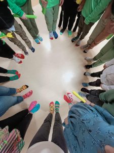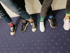 Dzisiejszy dzień to był naprawdę kolorowy dzień w naszej szkole. A to wszystko za sprawą kolorowych skarpet nie do pary! Dzień Kolorowej Skarpety miał zwrócić uwagę całej społeczności szkolnej na inne święto, czyli Międzynarodowy Dzień Osób z Zespołem Downa, który obchodzony jest dokładnie 21 marca. Data obchodów nie jest przypadkowa – dzień 21 marca patronuje rozpoczynającej się wiośnie i narodzinom ludzi niezwykłych, data wiąże się również z istotą zaburzenia, czyli dodatkowym chromosomem (trisomia) w 21 parze chromosomów.