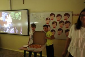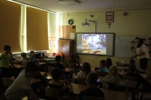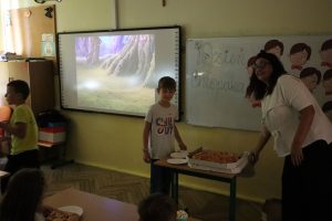 Klasowe kino z okazji Dnia Chłopaka przy pysznej pizzy i popcornie. Podczas oglądania filmów ,,Przygody Smerfów” oraz ,,Król lew” szybko minął nam ten super udany dzień w szkole.