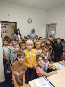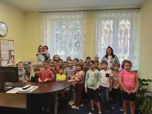 Niektóre dzieci bardzo chciały pomóc w pracy naszej Pani Dyrektor i od razu zasiadły za biurkiem…