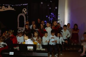 Nasi najmłodsi uczniowie z ogromnym zaangażowaniem wcielili się w swoje role, a ich szczerość i dziecięca wiara w magię świąt nadały Jasełkom wyjątkowy klimat. Pięknie wykonane kolędy i pastorałki poruszyły publiczność, a wspólny śpiew blisko 300 osób był niezapomnianym doświadczeniem.