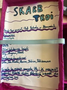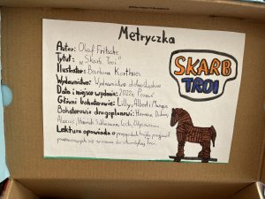 Projekt wykonywany w grupach mający na celu stworzenie pudełek lekturowych zakończył pracę dotyczącą lektur w klasach: czwartej i dwóch piątych. Zadaniem uczniów było ozdobienie pudełka, wykonanie metryczki książki, włożenie do wewnątrz 5 przedmiotów kojarzących się z treścią utworu oraz wykonanie ilustracji do najciekawszego lub najzabawniejszego wydarzenia. Czwartaki wzięły na tapet „Tomka w krainie kangurów”, natomiast piątaki „Skarb Troi”. Efekty pracy naszych uczniów możecie obejrzeć poniżej.