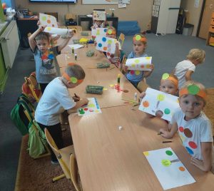 13 września w oddziale przedszkolnym obchodziliśmy Międzynarodowy Dzień Kropki. Dlaczego kropka? Ponieważ to od niej wszystko się zaczęło! To wspaniałe święto celebrujące inność, kreatywność i rozwijanie ukrytego potencjału ma swój początek w książce Petera H. Reynoldsa pt. „The Dot” opowiadającej historię małej dziewczynki Vashti, która dzięki malutkiej kropce i wspaniałej nauczycielce plastyki uwierzyła w swoje możliwości i nabrała odwagi, by rozwijać swoją pasję.