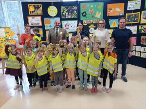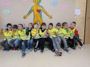 Dyplomy i elementy odblaskowe za rymowanki oraz hasła związane z noszeniem odblasków otrzymali: