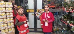 W piątek 8 grudnia Wolontariusze Szkolnego Koła Caritas wraz z opiekunami wzięli udział w Ogólnopolskiej Zbiórce Żywności „Tak Pomagam”. Produkty były zbierane w sklepie Biedronka w Stąporkowie. Artykuły pozyskane w czasie akcji posłużą do przygotowania w okresie świąt posiłków i paczek dla osób ubogich, bezdomnych i starszych. Ogromne brawa należą się Wolontariuszom, którzy poświęcili swój wolny czas i tak dzielnie trwali przy koszykach, zachęcając klientów do włączenia się w zbiórkę.