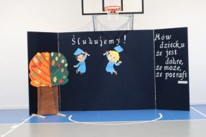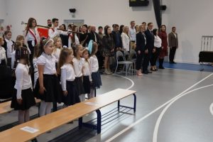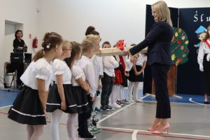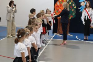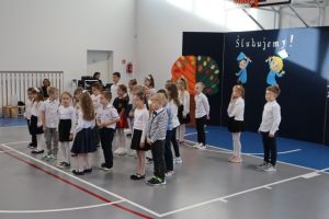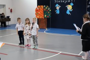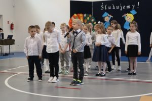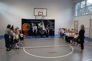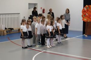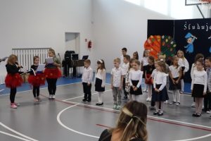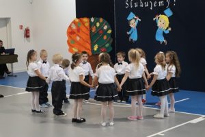 Przed aktem ślubowania, które uroczyście poprowadziła Pani Dyrektor Katarzyna Spera, dzieci zaprezentowały się w części artystycznej, pokazując swoje talenty i umiejętności.  Z wielkim zaangażowaniem wykonały piosenki, recytowały wiersze i tańczyły.