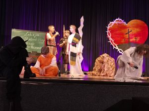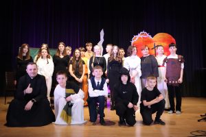 Przepiękny spektakl nagrodzony owacjami na stojąco przedstawili następujący uczniowie: Lena Walczuk, Maja Świercz, Olaf Walczuk, Pola Walczuk, Szymon Ciepiela, Kornel Kurcbart, Luiza Sikora, Gabriela Ziętek, Nikodem Mastalerz, Wojciech Baran, Kacper Dytrych, Kacper Rut, Adam Drzewiecki, Bartosz Florczak, Agata Łuczyńska, Szymon Kusztal, Jan Młodawski. Główne role odegrali: Kaja Stefańczyk (nowa dziewczyna) oraz Alan Bestecki (Jezus).