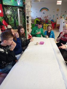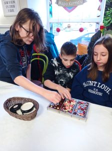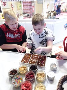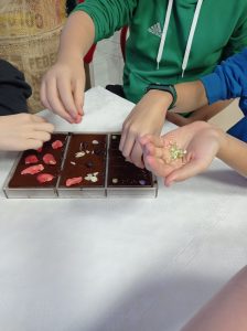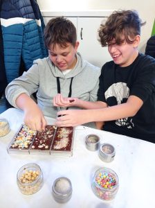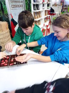 W Magii Karmelu uczniowie poznali historię powstania manufaktury, uczestniczyli w czekoladowych warsztatach edukacyjnych “Od ziarna do tabliczki czekolady”.