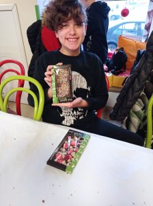 Każdy uczeń dowiedział się skąd pochodzi i jak smakuje prawdziwe ziarno kakaowca, zaprojektował i wykonał własną 100g tabliczkę czekolady
