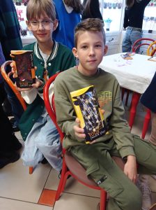 W trakcie prezentacji multimedialnej uczniowie poznali cały proces produkcji czekolady od ziarna do gotowej tabliczki. Wszyscy mogli skosztować gorącą czekoladę oraz otrzymali dyplomy Młodych czekoladników.