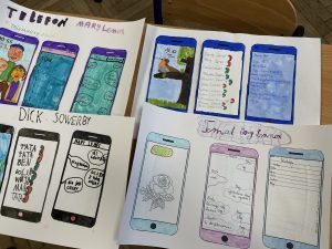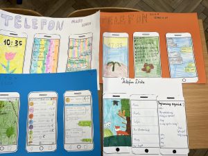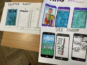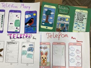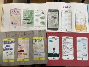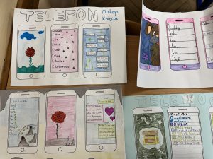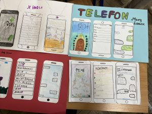 Uczniowie klas: 4, 5a, 5b oraz 8 w trakcie lekcji języka polskiego pracowali nad stworzeniem smartfonów wybranych przez siebie bohaterów lektur. Ich zdanie nie było łatwe, ponieważ składało się aż z trzech etapów: projekt tapety telefonu, która oddawałaby charakter postaci i jej przyzwyczajenia, umieszczenie na ekranie listy ulubionych kontaktów bohatera oraz zredagowanie wiadomości sms do innej postaci książki.