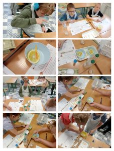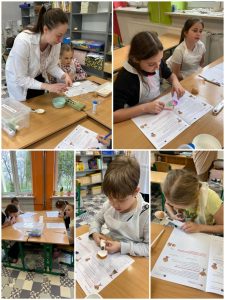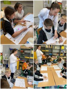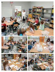 We wtorek 25 kwietnia uczniowie klasy II i III zamienili się w prawdziwych badaczy. Uczestniczyli w edukacyjnych warsztatach „Świat Młodych Badaczy” w ramach programu firmy Henkel Polska we współpracy z firmą LeoLAB. Uczniowie wykonywali proste eksperymenty badawcze, np. odmierzali potrzebne składniki, samodzielnie rozpoznawali badane substancje, wyciągali wnioski. Warsztaty ogromnie zaciekawiły uczniów. Z zainteresowaniem oczekiwali na rezultaty przeprowadzanych eksperymentów, zadawali wiele pytań i szukali na nie odpowiedzi. Zajęcia z pewnością rozbudziły zainteresowanie dzieci światem nauki. Forma zabawy i praktycznych doświadczeń sprawiły, że uczniowie czuli się jak prawdziwi badacze w laboratorium.