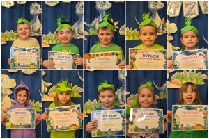 Na zakończenie przedszkolaki wykonały pracę techniczną – swojego własnego „Dinusia” oraz każdy z nich otrzymał certyfikat uczestnictwa w Dniu Dinozaura