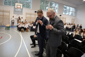Swoją obecnością uroczystość zaszczycili zaproszeni goście: Burmistrz – Pan Jarosław Młodawski, Wiceburmistrz – Pan Ryszard Kusak oraz przewodnicząca Rady Rodziców-Pani Joanna Jedynak.