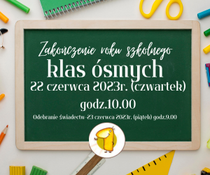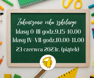 Zapraszamy na uroczyste zakończenie roku szkolnego 2022/2023, które odbędzie się według załączonego poniżej harmonogramu.
