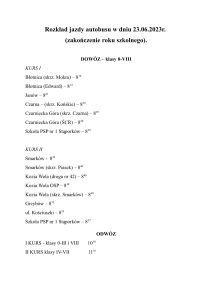 Uczniowie klas ósmych, którzy nie mają możliwości dojazdu w czwartek we własnym zakresie, przyjeżdżają autobusem szkolnym tak jak w zwykły dzień nauki (Uwaga! Autobus w czwartek kursuje bez zmian wg „zwykłego” grafiku).
