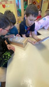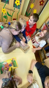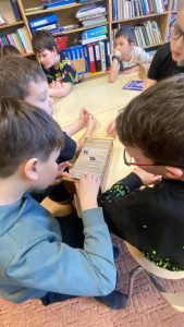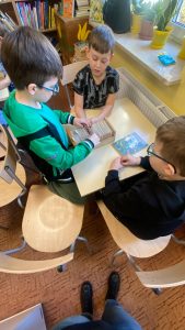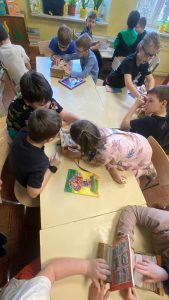 Klasa druga odwiedziła bibliotekę szkolną. W katalogu alfabetycznym uczniowie samodzielnie wyszukiwali swoich ulubionych autorów i swoje ulubione książki.