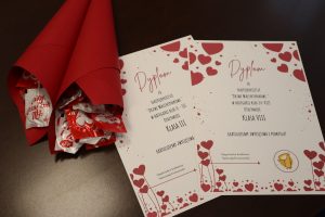 Nagrodą były słodkości walentynkowe.