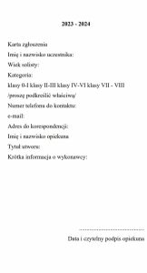 Konkurs odbędzie się w dniu 26 stycznia (piątek), zgłoszenia przyjmujemy do 24 stycznia.