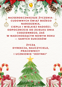 Życzenia świąteczne Post author:Marta Młodawska Post published:20 grudnia 2025 Post category:Bez kategorii Kochani! Przyjmijcie od naszej „jedynkowej” społeczności najlepsze życzenia z okazji nadchodzących świąt🌲⭐❄☃🎁 Może ci się spodobać również Jesienny Kiermasz „Dary Jesieni” 15 października 2025 Zapraszamy rodziców na spotkanie 14 listopada 2024 Ważne informacje dotyczące zakończenia roku szkolnego! 23 czerwca 2025